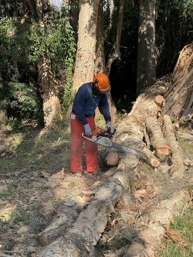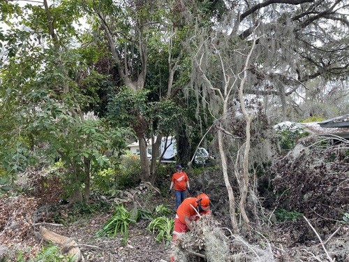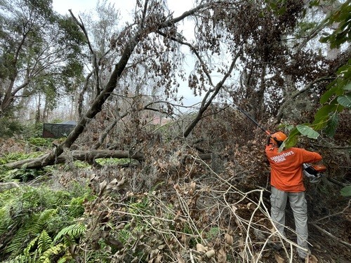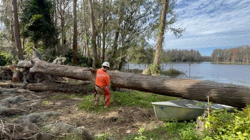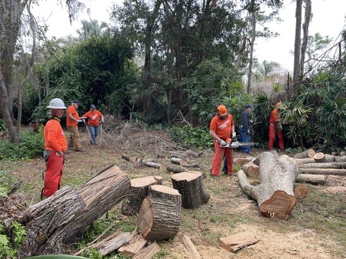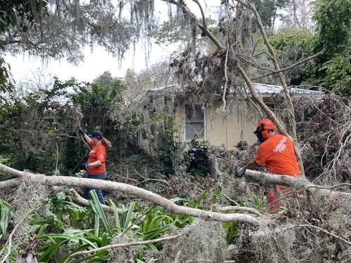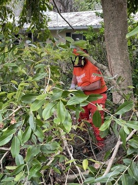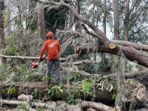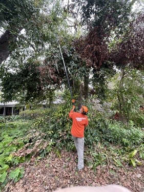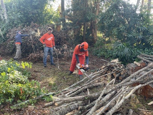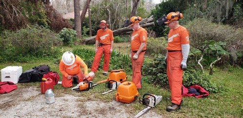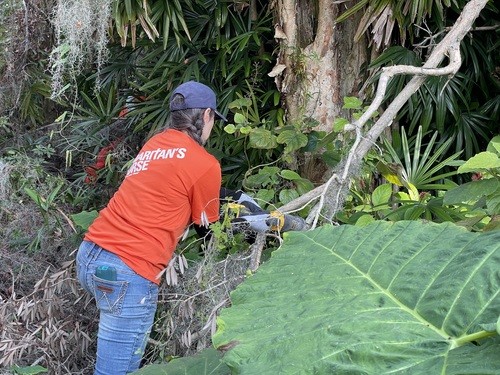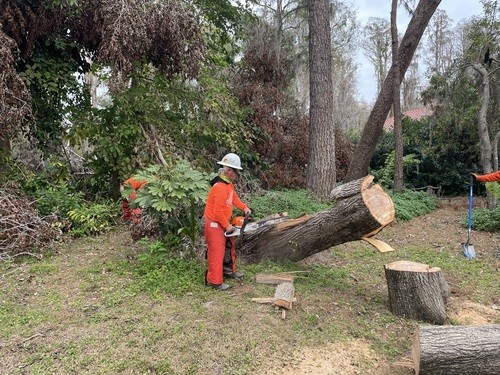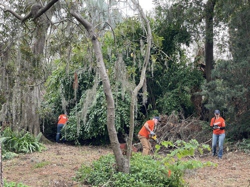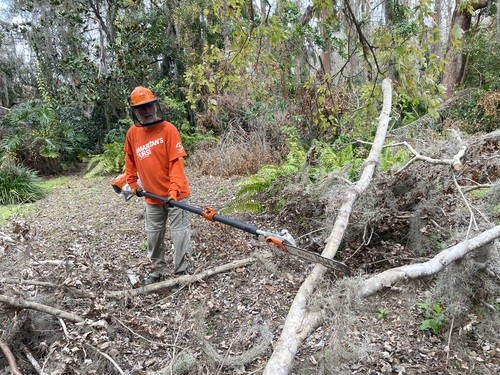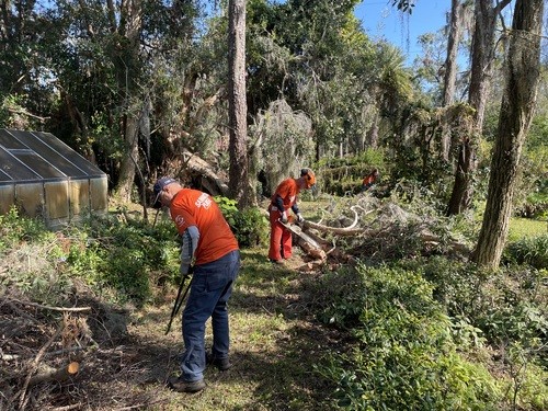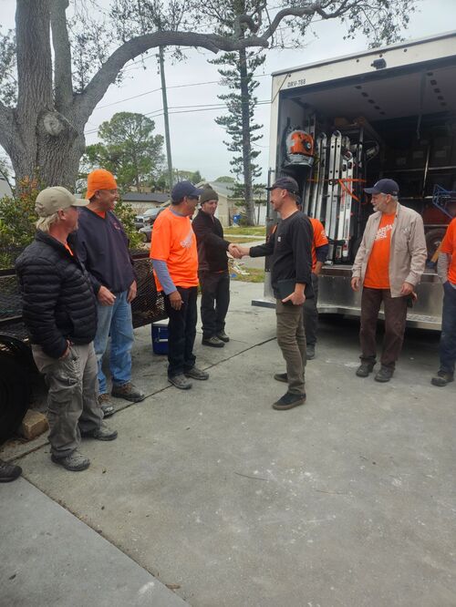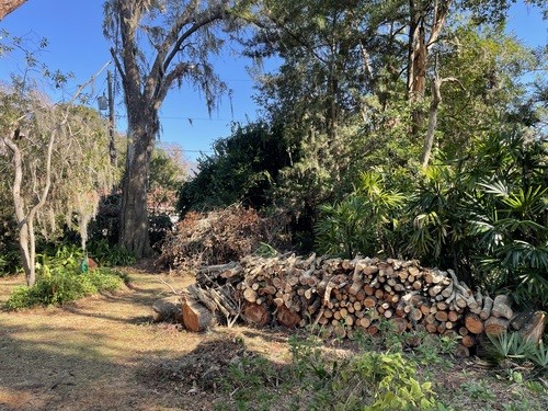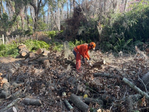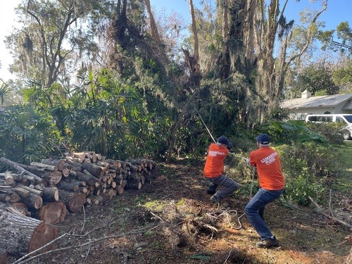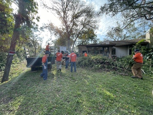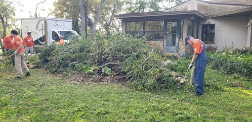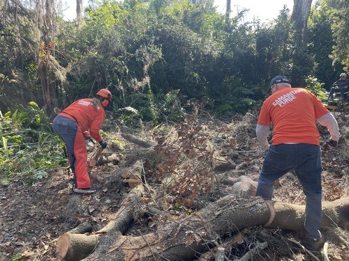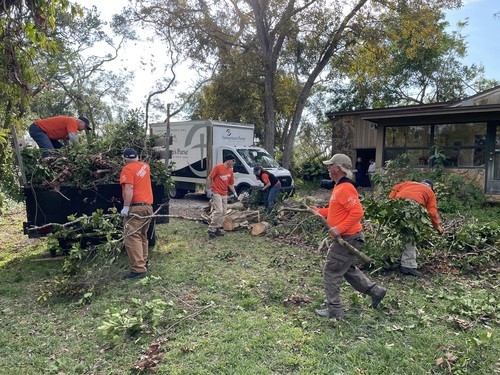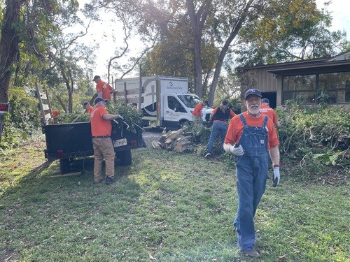 Monday and Tuesday, we had the privilege of doing some debris cleanup and then started a two day project at one house clearing and cutting up many trees that had fallen down when a tornado touched down on her property around the same time as the hurricanes and it took out 23 trees on the property. We broke out the chainsaws and pole saws and spent 2 days cutting trees and stacking the logs and branches. The main goal was to take as many of trees as possible that had fallen around her property and open all the paths. This lady was 86 years old and used her John Deere lawn mower to zip around her property. She couldn’t even get to her backyard, greenhouse, or waterfront with all the trees down. She had so much fun watching us and she loved it so much that she didn’t even consider this to be a disaster to her. It was just “fun.” She called us her termite team because we just spread out everywhere and consumed all the trees super fast. We were able to clear out 15 of the 23 trees in a day and half. The cheapest quotes she had received from local tree companies was $10,000 per tree. We potentially saved her $150,000 by doing this work and gave her freedom back to enjoy her yard.