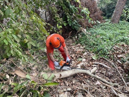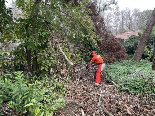 When we arrived, we actually didn’t think it looked that bad. It appeared as just an overgrown forest, but in reality it was all the trees crisscrossing over multiple paths that we didn’t even realize existed. We all had so much fun and really enjoyed the conversations with the homeowner. She even showed us her model train collection that her late husband built.